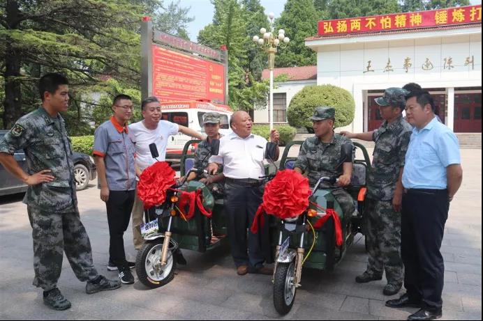 他为部队官兵送上两辆价值近万元的电动三轮车和丰县大沙河酥梨,企业不景气的情况下,连总也拿出10000元为入伍的新兵专门定制一批精致笔记本并寄语:不负家乡重托,铭记军人职责,争做优秀战士,勇为丰县争光。