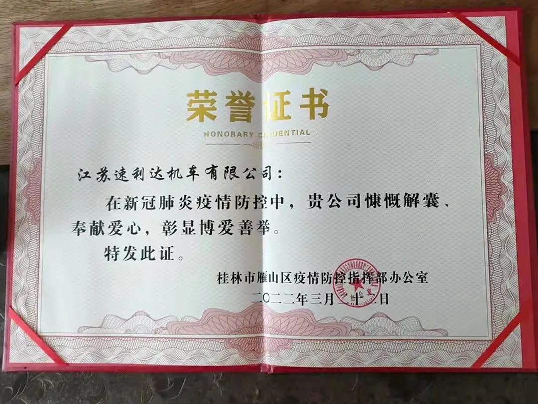 新冠肺炎疫情防控中,速利达机车有限公司慷慨解囊、奉献爱心,彰显博爱善举。